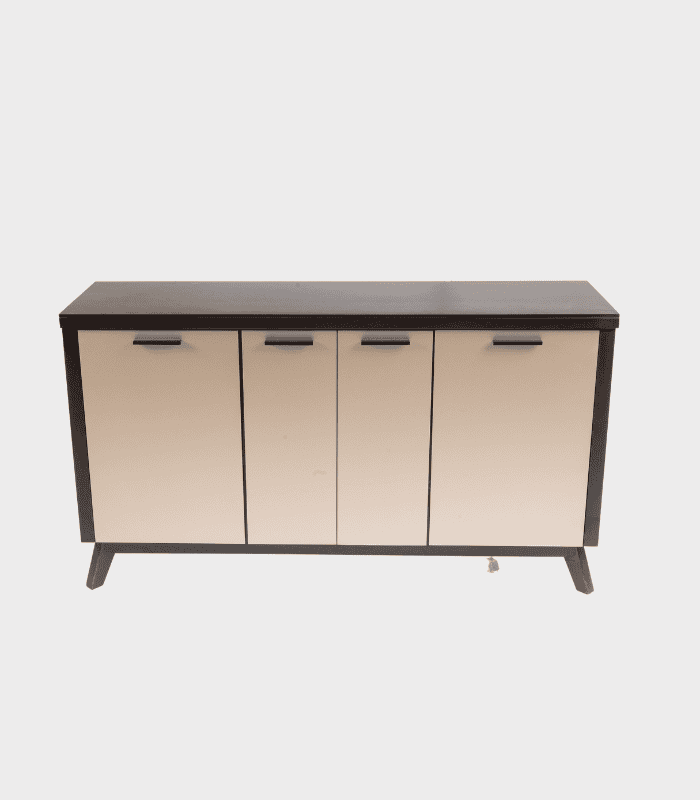 El bufetero Vancouver destaca por su diseño contemporáneo y funcionalidad refinada. Su estructura robusta, fabricada en madera de alta calidad, ofrece una excelente capacidad de almacenamiento gracias a sus cuatro puertas con tiradores que aportan un toque moderno.