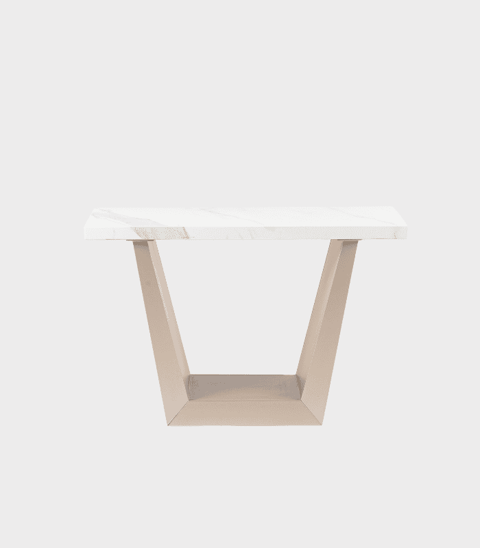 La consola Mónaco con superficie de porcelanato fusiona estilo moderno con materiales de alta resistencia. Su base en forma trapezoidal ofrece una silueta contemporánea y firme, mientras que el tablero de porcelanato evoca la elegancia del mármol con mayor durabilidad y fácil mantenimiento. Ideal para entradas, salas o pasillos que buscan sofisticación sin sacrificar funcionalidad.