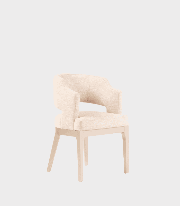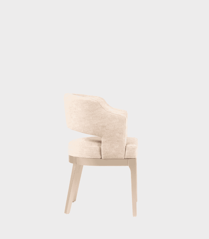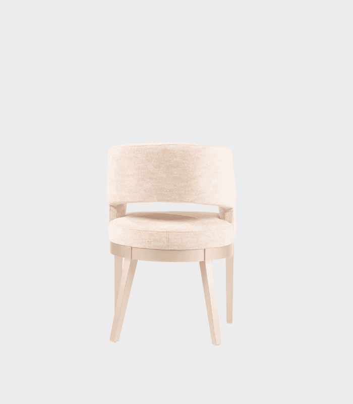 La silla Trevi fusiona elegancia contemporánea y confort en un diseño compacto y sofisticado. Su respaldo curvo y abierto proporciona